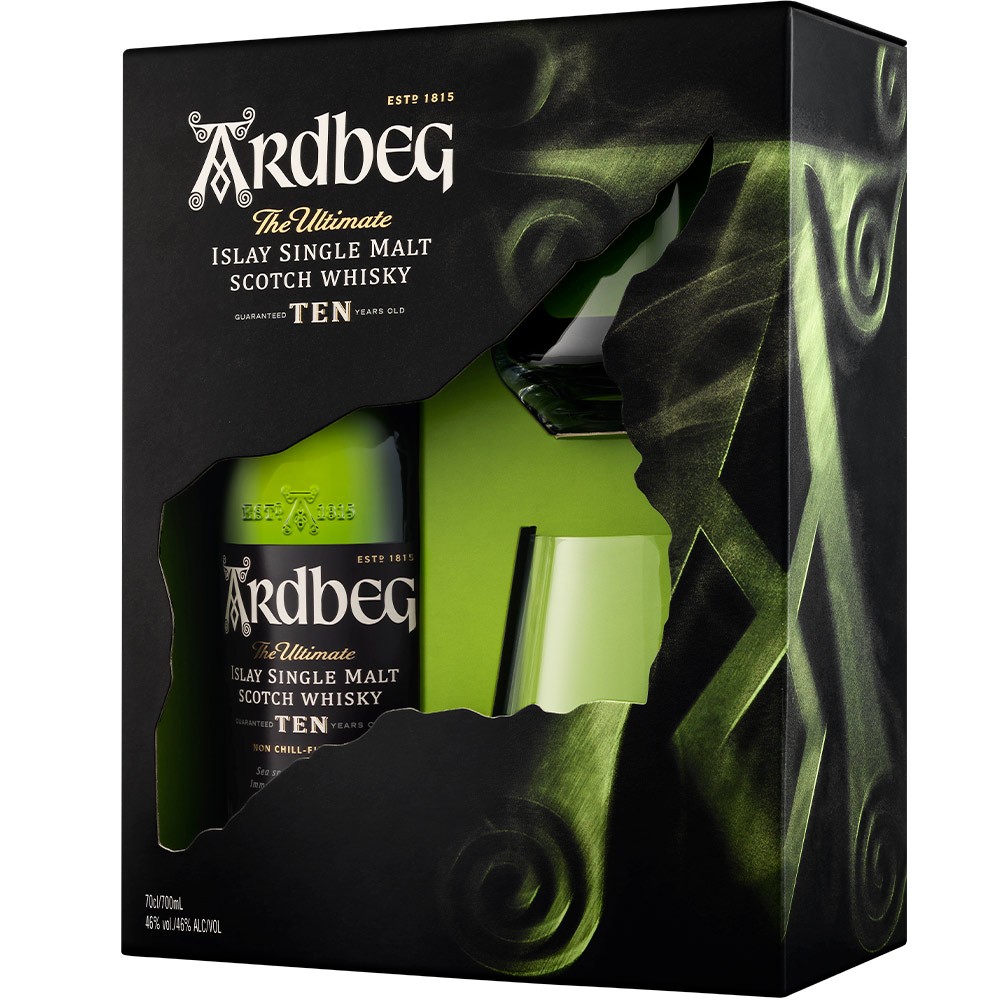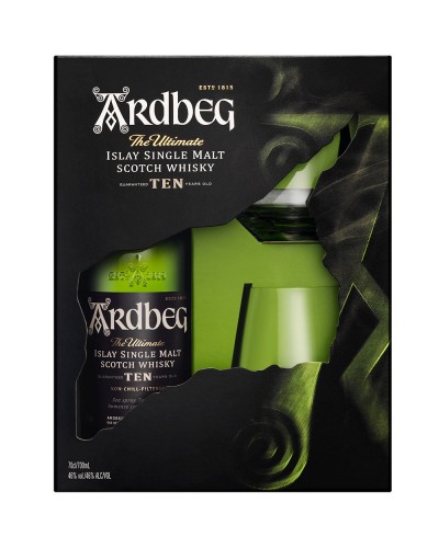 Ardbeg 10 Años tiene un quearoma desprende notas de melón, nueces, cítricos y flore frescas y un ligero aroma a café. En boca es sabroso y ligeramente especiado con un final largo y ahumado.