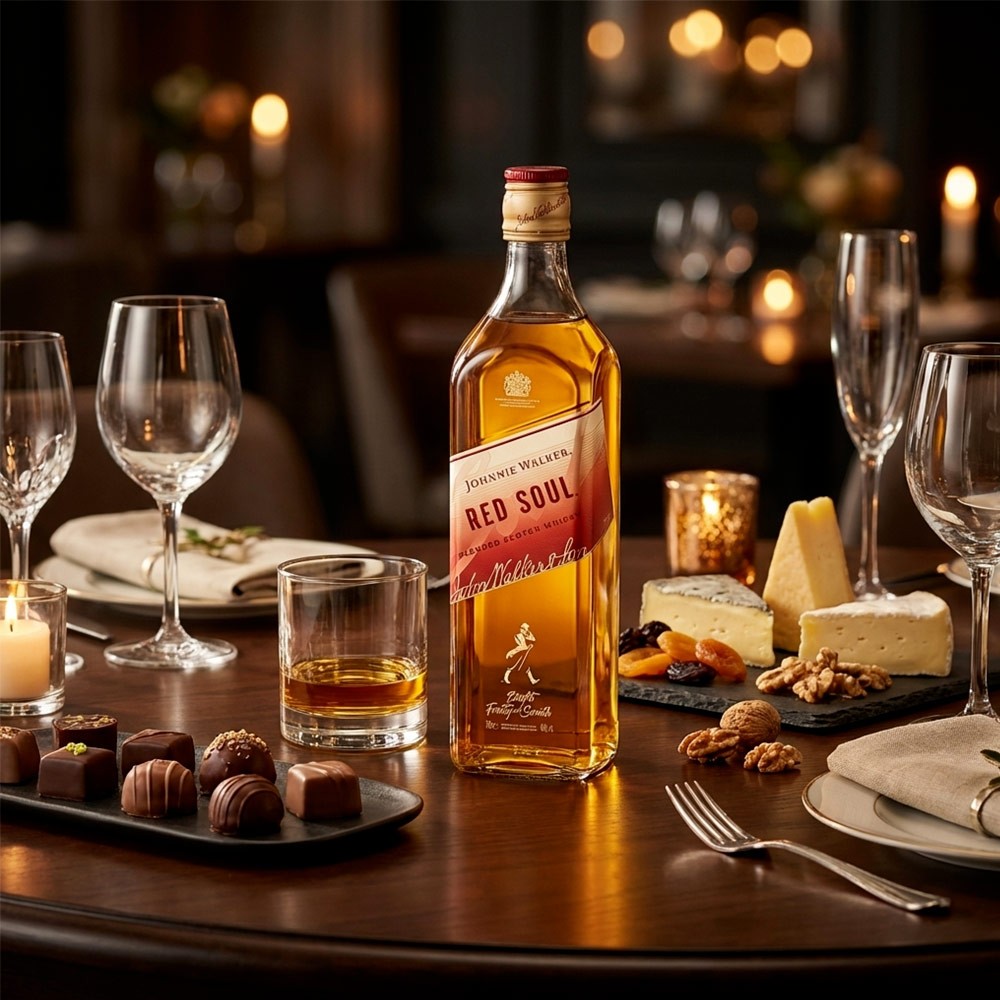 Johnnie Walker Red Soul wird sorgfältig aus einer Auswahl der besten Malt- und Grain-Whiskys aus den bekanntesten Regionen Schottlands hergestellt und vereint die leichten und frischen Noten der Ostküste mit den subtilen Torfnuancen des Westens. Das Ergebnis ist ein äußerst vielseitiger und zugänglicher Whisky, der sowohl pur, auf Eis als auch als Basis für einen Premium-Cocktail überzeugt.