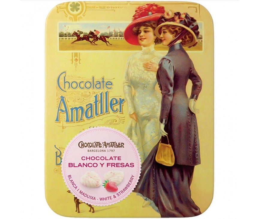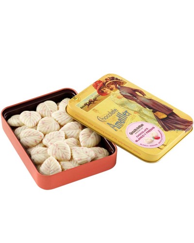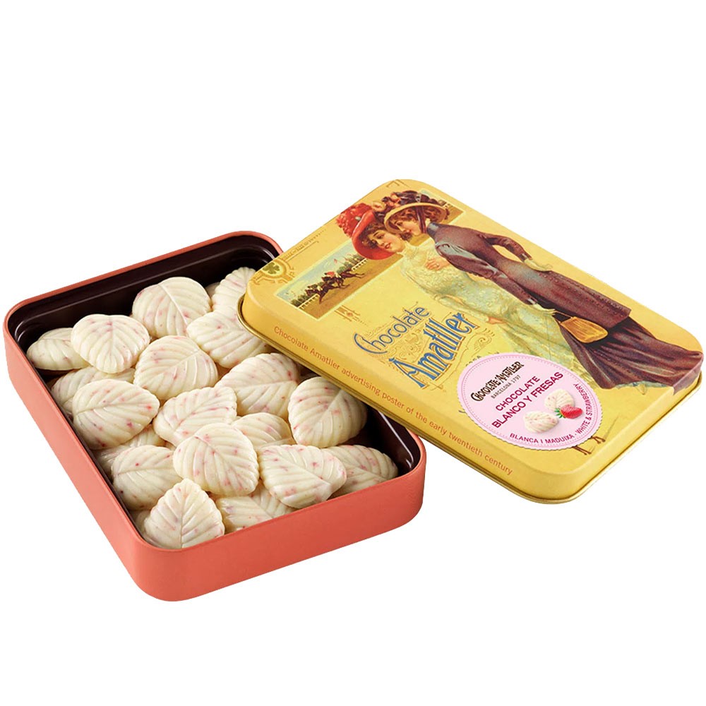 Amatller Hojas de Chocolate Blanco y Fresa 72gr.