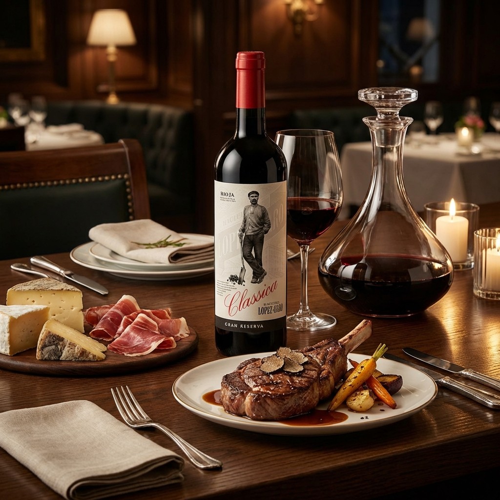 Der Classica Hacienda López de Haro Gran Reserva Tinto ist viel mehr als nur ein Wein; er ist eine flüssige Hommage an die Geschichte und Tradition der Rioja Alta.