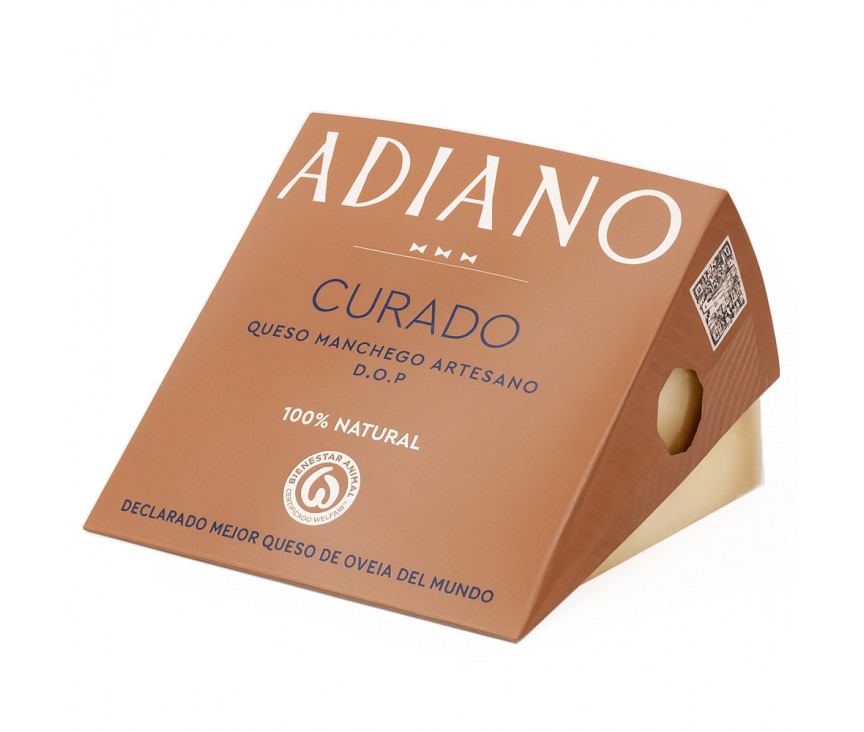 The Adiano Cured Manchego Cheese Wedge in a 250 g gift box is a highly prestigious cheese made from Manchega sheep’s milk and recognized as the best sheep’s cheese in the world.