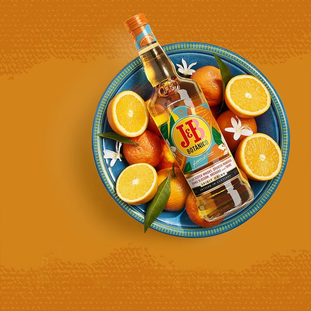 J&B BOTÁNICO is a perfect drink for the afternoon. Its perfect combination is with Sprite and an orange slice. It is made with J&B rare Scotch whiskey, mandarins of Spanish origin, orange blossom, oregano and thyme.