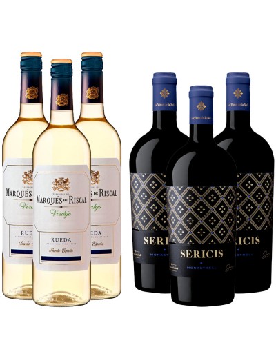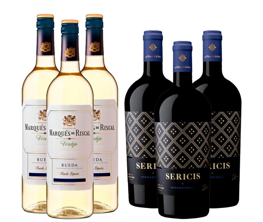 Pack composed of 3 bottles of Sericis old Monastrell vines (D.O. P Alicante) and 3 Bottles of Marqués de riscal Verdejo (D.O. Rueda).