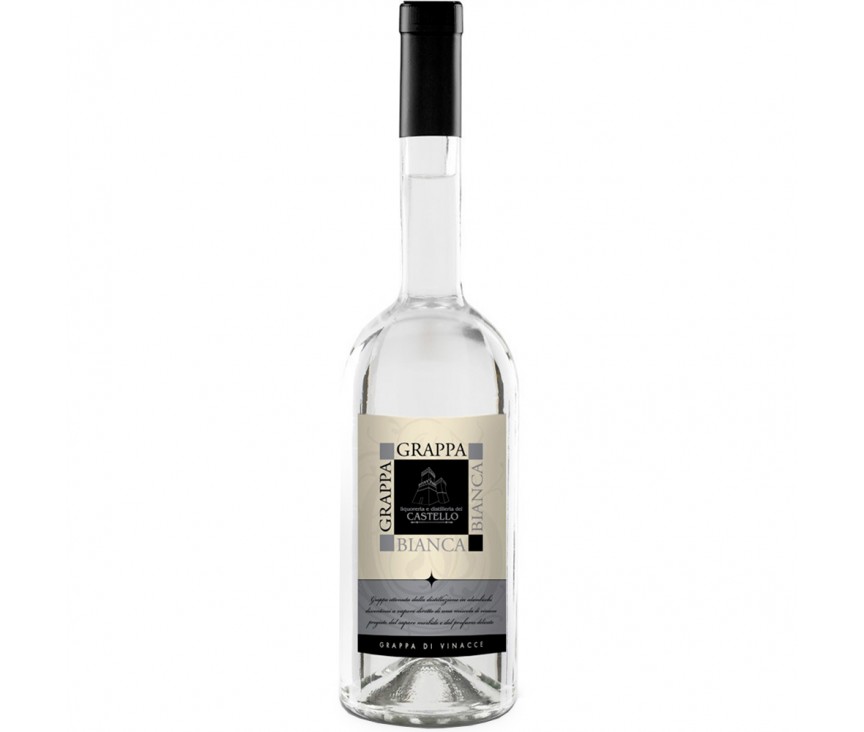 Grappa Castello Bianca es una grappa italiana de estilo clásico, elaborada a partir de orujos seleccionados y destilada siguiendo métodos tradicionales que buscan preservar la pureza y la expresión varietal de la materia prima. Se trata de una grappa blanca, sin crianza en madera, que destaca por su perfil limpio, directo y auténtico, fiel a la tradición más esencial de este destilado emblemático de Italia.
