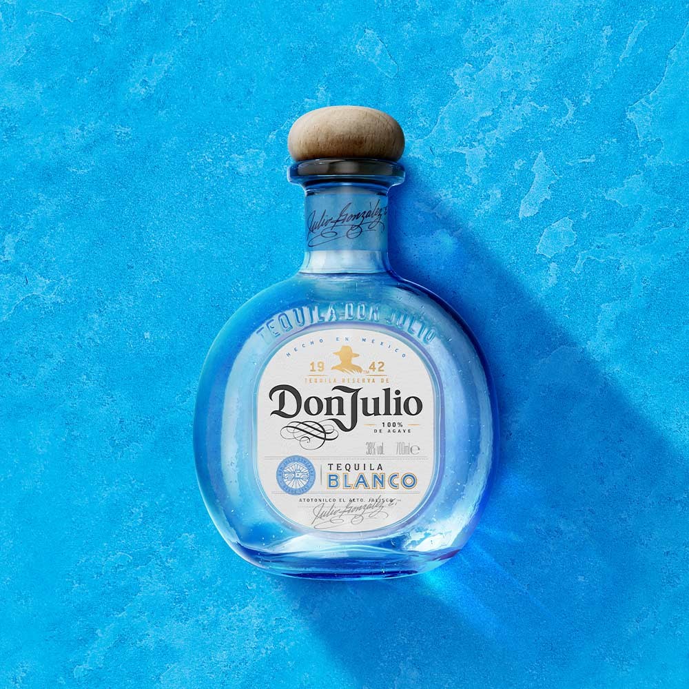 Don Julio Blanco, una tequila bianca ultra-premium e la tequila più venduta in Messico, funge da pietra angolare di tutte le varianti del marchio. Questo è prodotto utilizzando agave fresca e un processo di distillazione tradizionale, che si traduce in una tequila nella sua forma più autentica. Caratterizzato da una sottile dolcezza di agave che inebria i sensi, seguita da una morbidezza e ricchezza senza pari. Il finale è puro e croccante, con note di pepe nero e un aroma erbaceo. Con il suo vibrante sapore di agave e un pizzico di agrumi, Don Julio Blanco trascende l'esperienza di una normale tequila, essendo perfetta da gustare con gli amici. Il modo migliore per assaporarlo è in un margarita di lusso, preparato con nettare d'agave, lime e ghiaccio, segnando una gradazione alcolica del 38%.