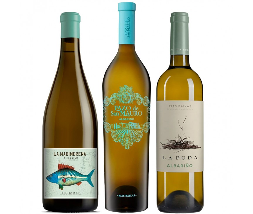 Pazo San Mauro Albariño. De intensidad aromática muy alta, con gran calidad en sus aromas. Nariz con notas afrutadas y recuerdos de cítricos, frutas y flores blancas. En boca es un vino muy varietal, con una entrada amplia donde destaca su frescura, equilibrio y persistencia.
