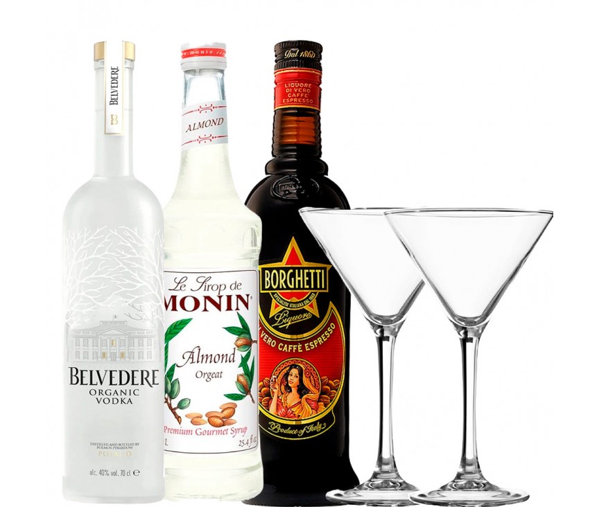 Con Belvedere Vodka, conocido por su suavidad y pureza, Borghetti Licor de Café, famoso por su rica intensidad, y un toque especial de Sirope de Almendra