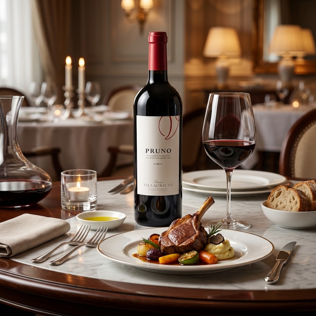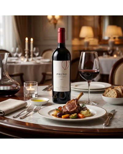 Pruno Villacreces de Ribera del Duero en formato Magnum, una presentación que no solo engrandece la mesa, sino que favorece una evolución más lenta y pausada del vino en botella. Elaborado por Finca Villacreces, bodega vecina de la legendaria Vega Sicilia en la 'Milla de Oro', este vino ha sido aclamado mundialmente por Robert Parker como el 'mejor vino del mundo relación calidad-precio'. Pruno es un ensamblaje moderno y vibrante de Tinto Fino (Tempranillo) y Cabernet Sauvignon, criado durante 12 meses en barricas de roble francés. Su perfil es una explosión de fruta roja madura, notas de toffee y un fondo mineral que refleja el terroir único de suelos franco-arenosos y el clima continental de la región. En boca es goloso, con taninos dulces y un volumen que llena el paladar sin perder frescura. El formato Magnum es ideal para coleccionistas o grandes celebraciones, garantizando una longevidad superior y una expresión aromática más compleja con el paso del tiempo.