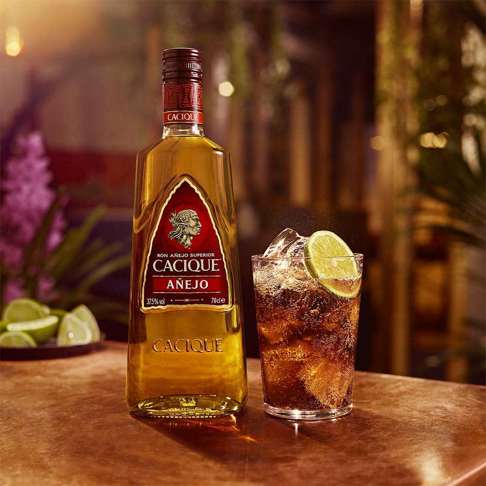 A gênese do rum Cacique remonta a 1959, na Venezuela, adotando o nome do líder tribal que tradicionalmente compartilhava rum com membros de sua comunidade. O Cacique Añejo, um rum venezuelano que se distingue pela sua tonalidade escura, é o resultado da combinação de sete variedades diferentes de rum, submetidas a três diferentes métodos de destilação e amadurecidas em barricas de carvalho americano.