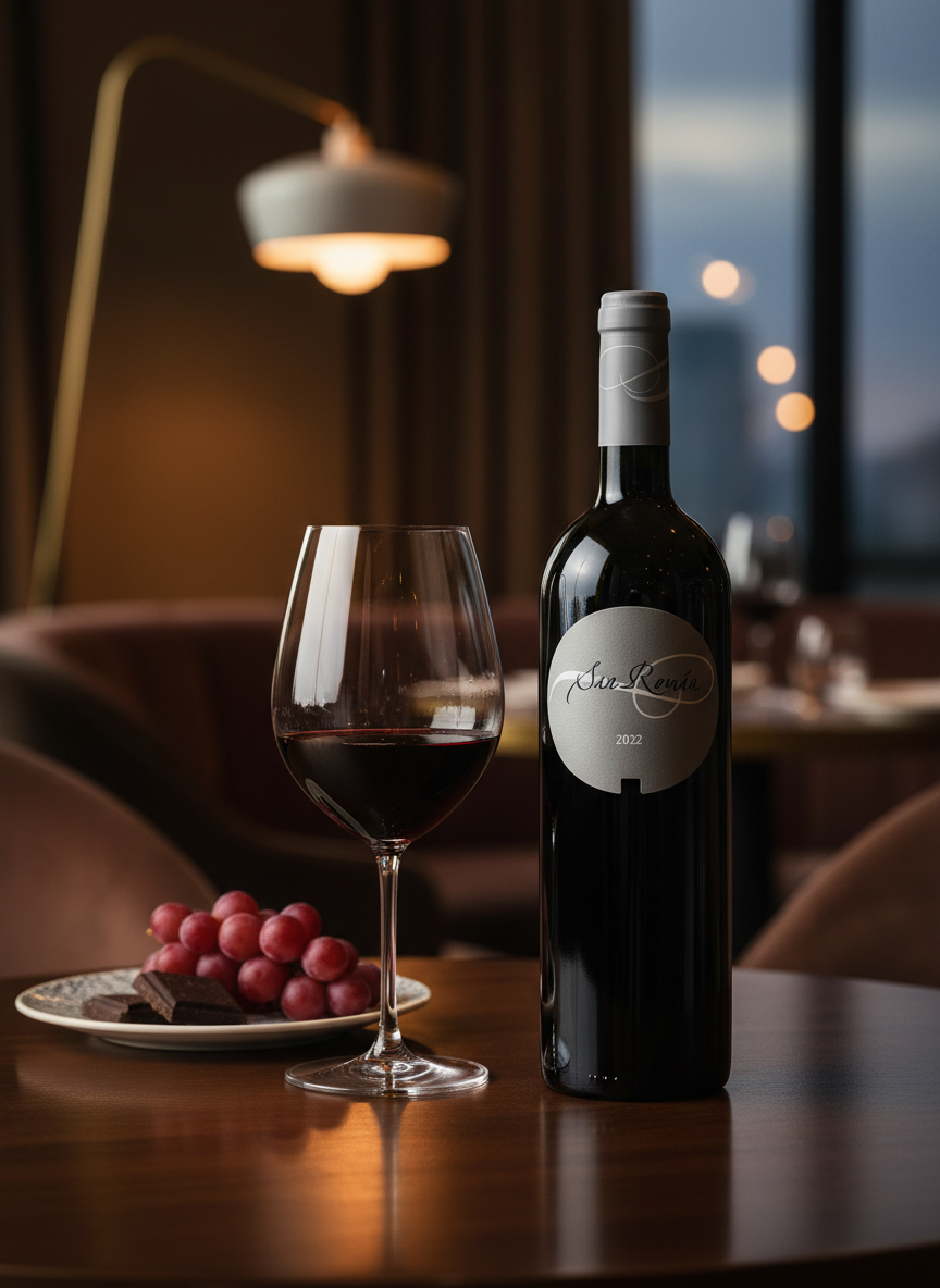 San Román En copa, despliega una nariz profunda de fruta negra madura, regaliz, notas minerales y un fondo especiado de ebanistería fina.