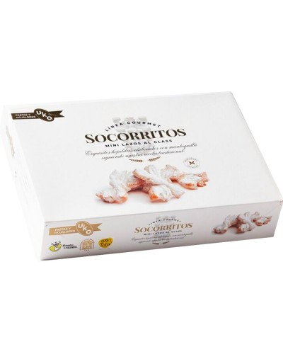 Los Socorritos Mini Lazos al Glass 250g son un delicioso y tradicional dulce español, elaborado con una receta artesanal que combina masa crujiente y un glaseado dulce irresistible.